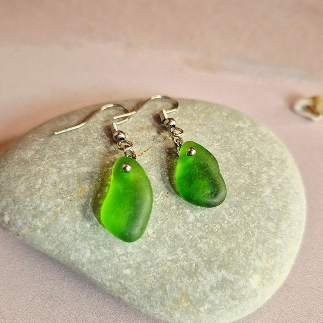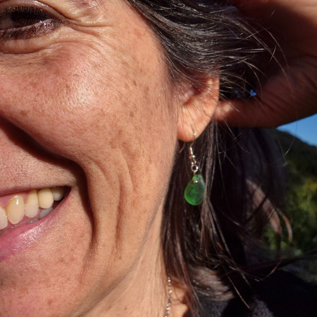 Ces boucles sont réalisées à partir de verre de mer vert, ramassé à la main sur la plage de mon enfance, à Ardore Marina, en Calabre (Italie)