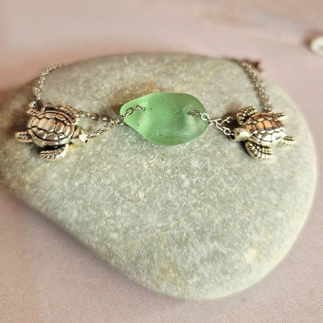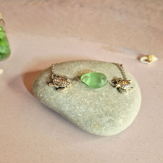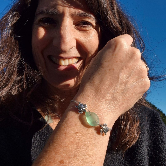 Ce bracelet est réalisé à partir de verre de mer ramassé à la main sur la plage de mon enfance, à Ardore Marina, en Calabre (Italie).