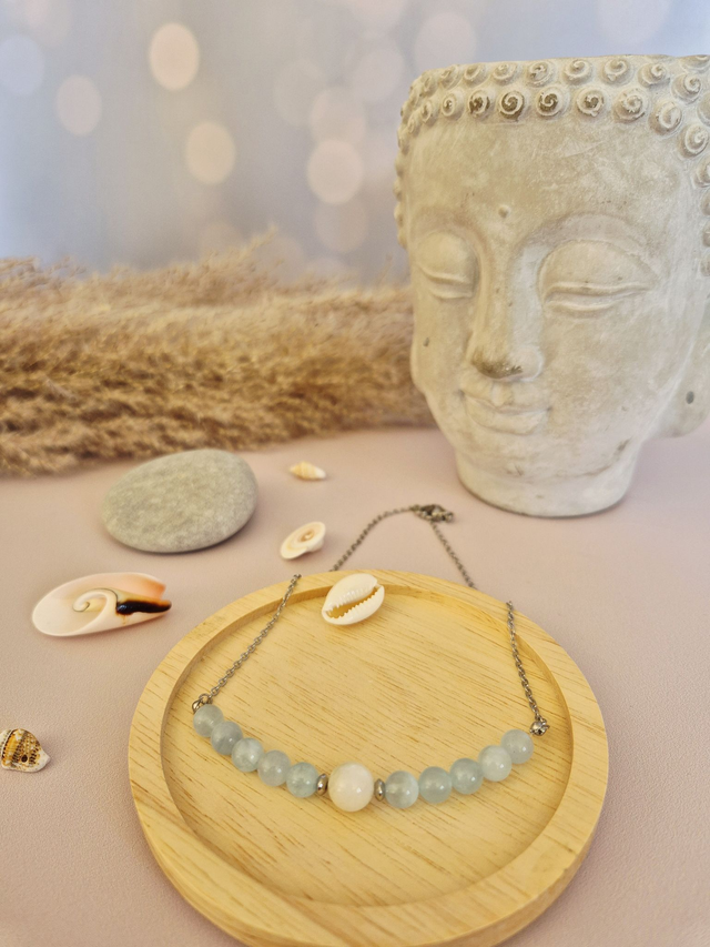 Plonge dans la douceur du lagon avec le collier BORA BORA, une création délicate et lumineuse en pierres naturelles.