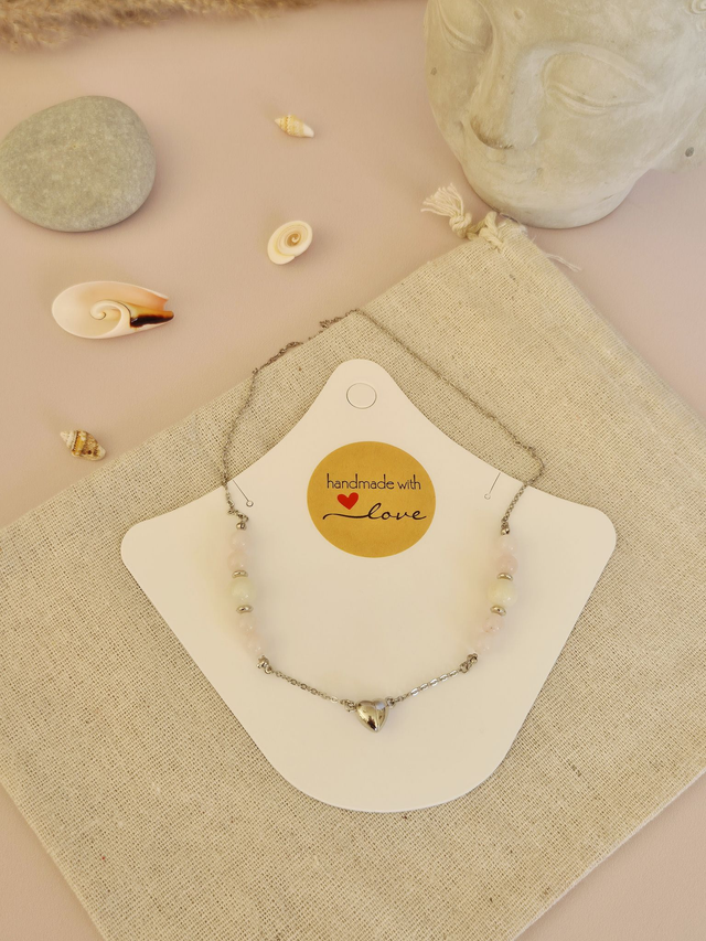 Collier CŒUR NOMADE – Quartz Rose du Brésil & Pierre de Lune beige d’Inde