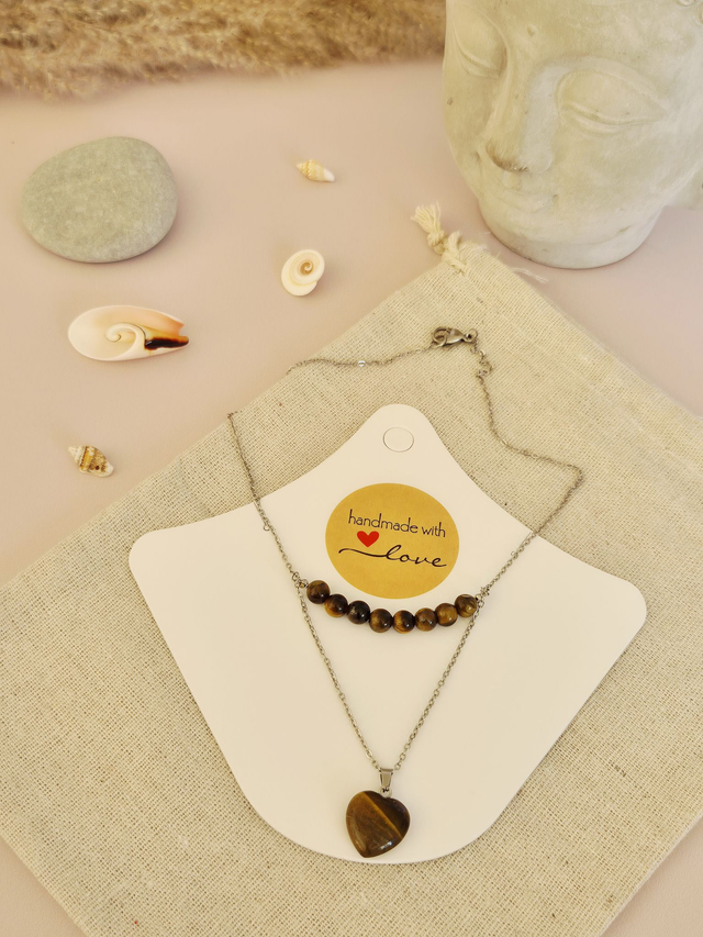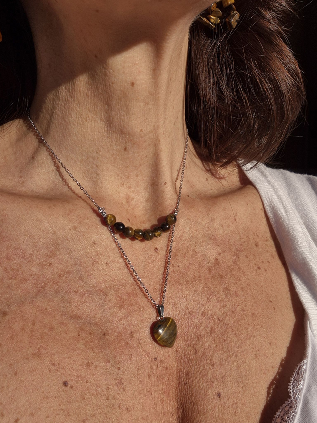 Collier SAVANA – Œil de Tigre naturel d’Afrique du Sud & Cœur