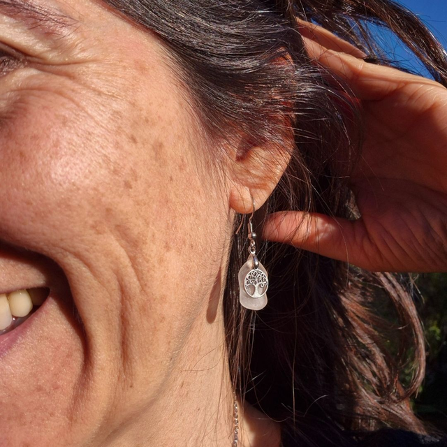 Ces boucles sont réalisées à partir de verre de mer blanc, ramassé à la main sur la plage de mon enfance, à Ardore Marina, en Calabre (Italie)