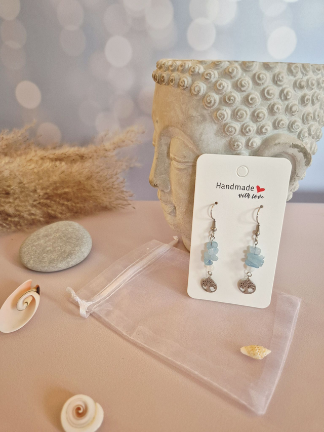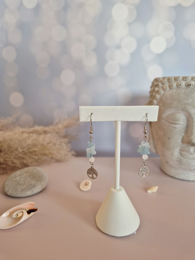 Boucles d’oreilles BORA BORA – Aigue-Marine naturelles & Arbre de Vie