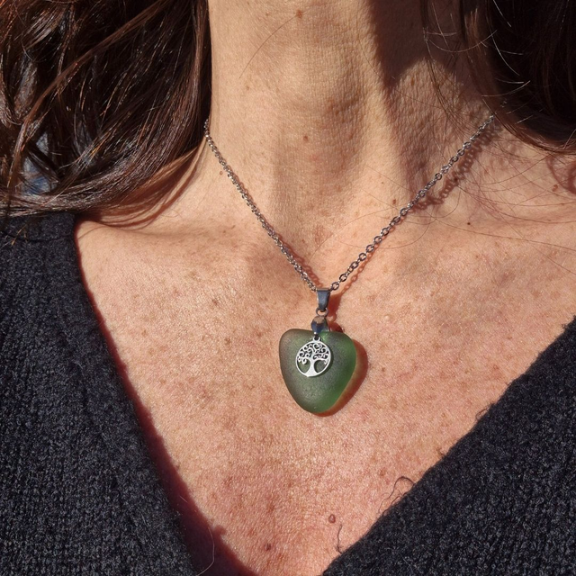Ce collier est réalisé à partir de verre de mer, ramassé à la main sur la plage de mon enfance, à Ardore Marina, en Calabre (Italie)